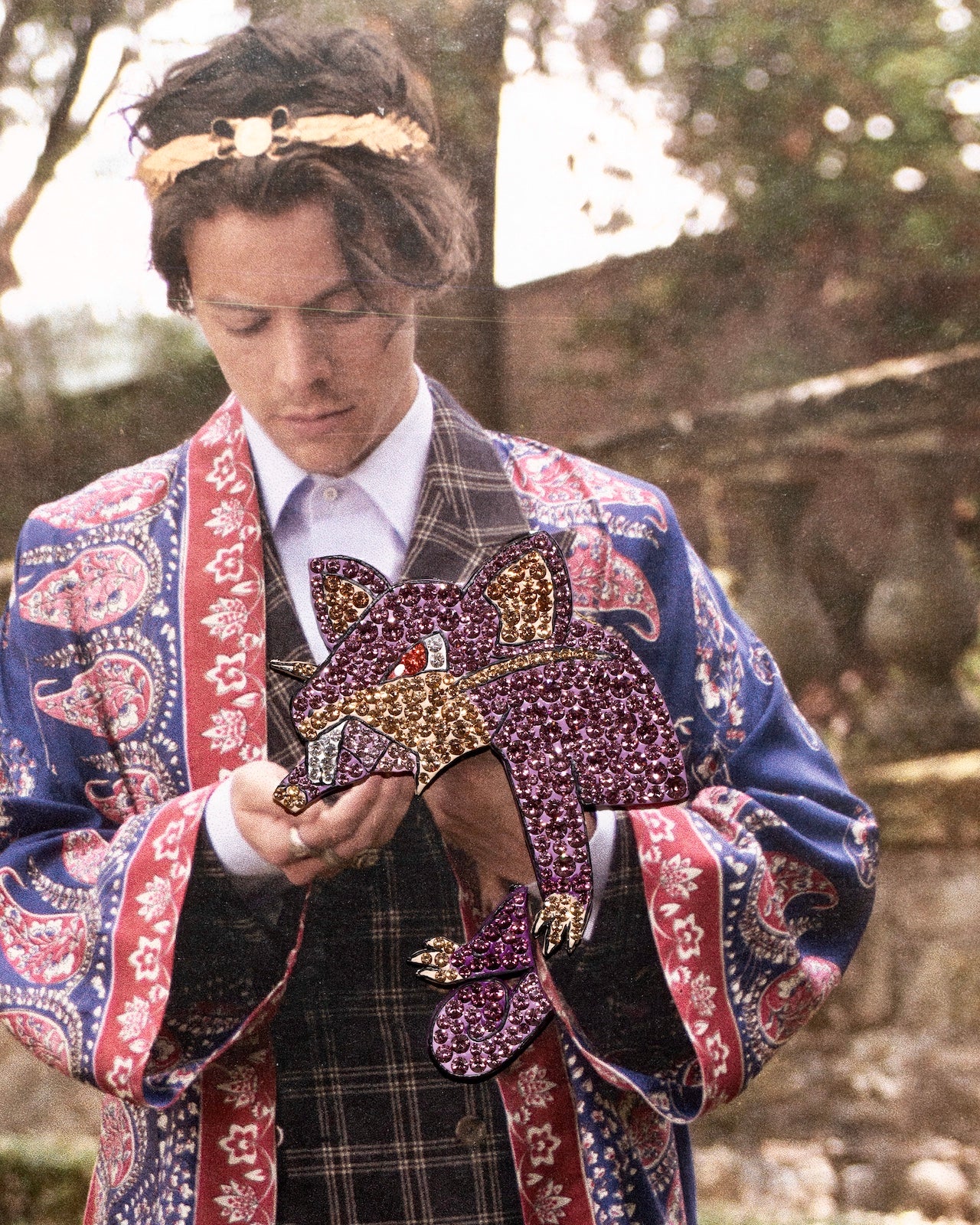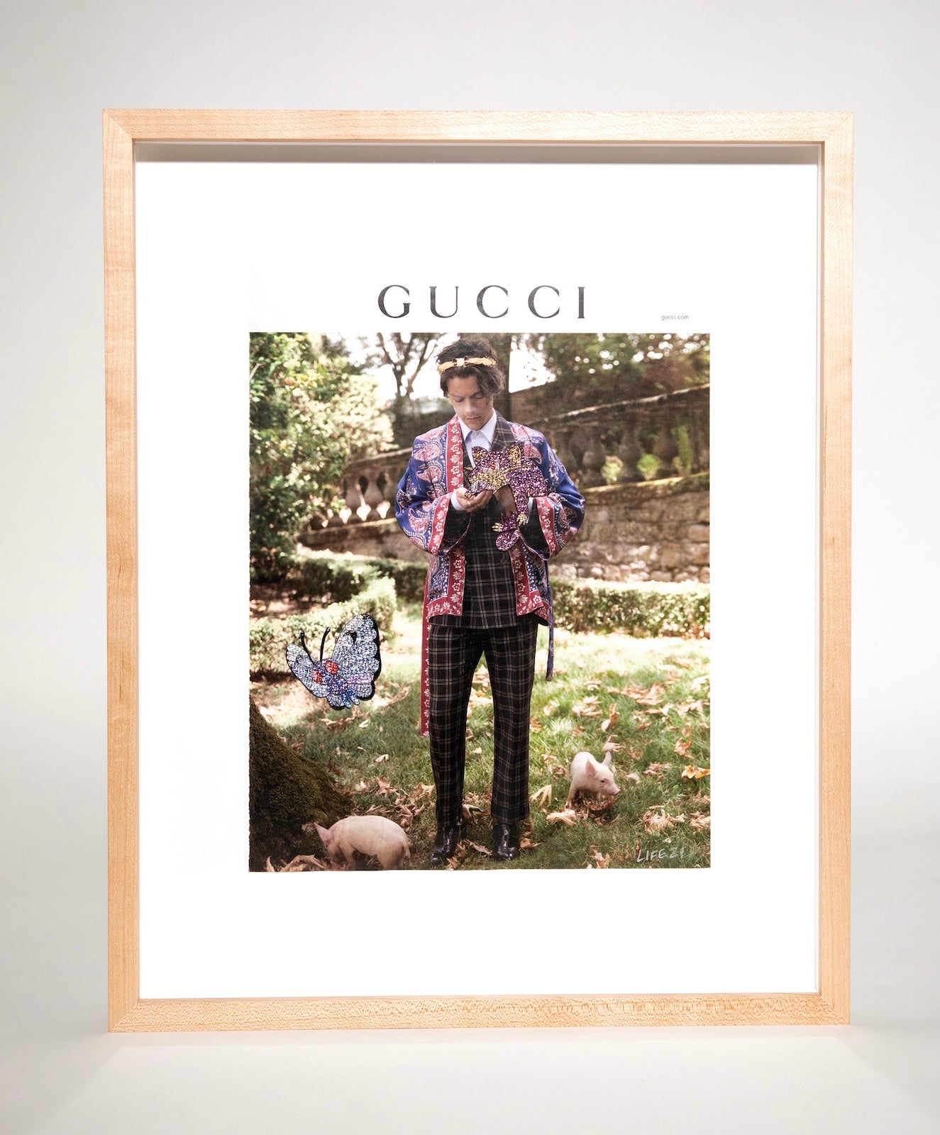 Crystals set in resin on magazine ad